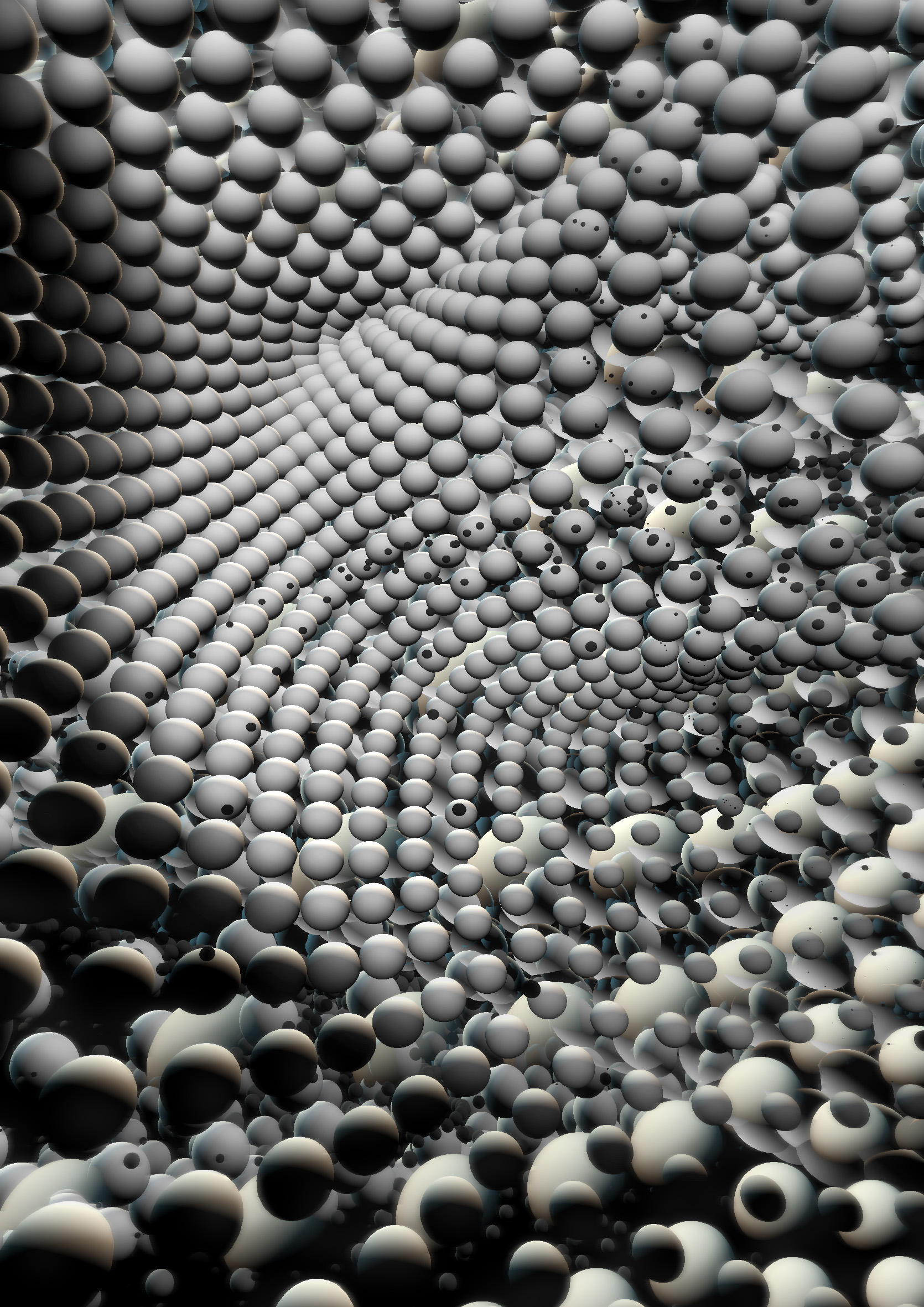 Graphic shaped by algorithmic data from a custom-built programme generating a digital mass, further sculpted by hand via hand-tracking sensors